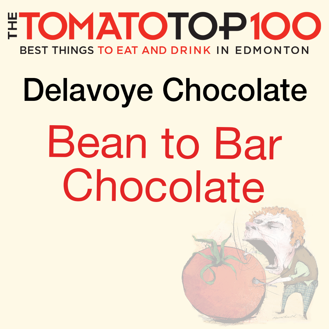 “Delavoye makes amazing chocolate right here in Edmonton, the quality of the chocolate itself is unmatched. The café is an absolute delight and the square is my go-to edible present for others (and me) that never lasts long!”